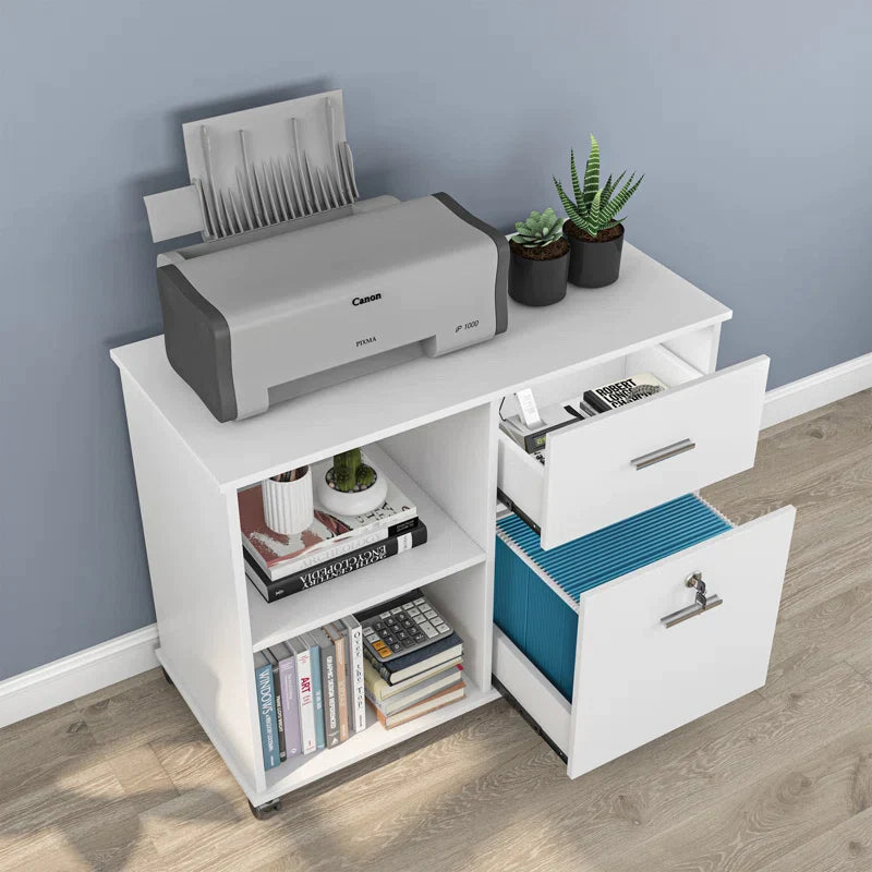 This office storage item features a drawer that can hold letter-size hanging files so you can keep all your important documents safe and organized. The open storage area provides you with an easy-access spot to store items like folders, work binders, notepads, and other miscellaneous items. The spacious top surface provides you with additional space to store office supplies. This stunning file cabinet is just what your office space needs.