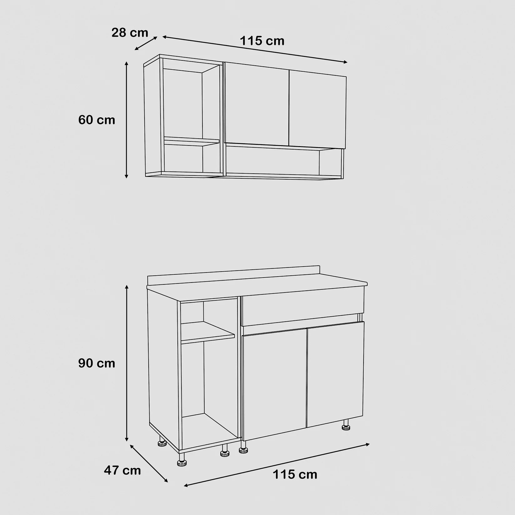 - Lower unit size: W 115cm - D 47cm - H 88cm