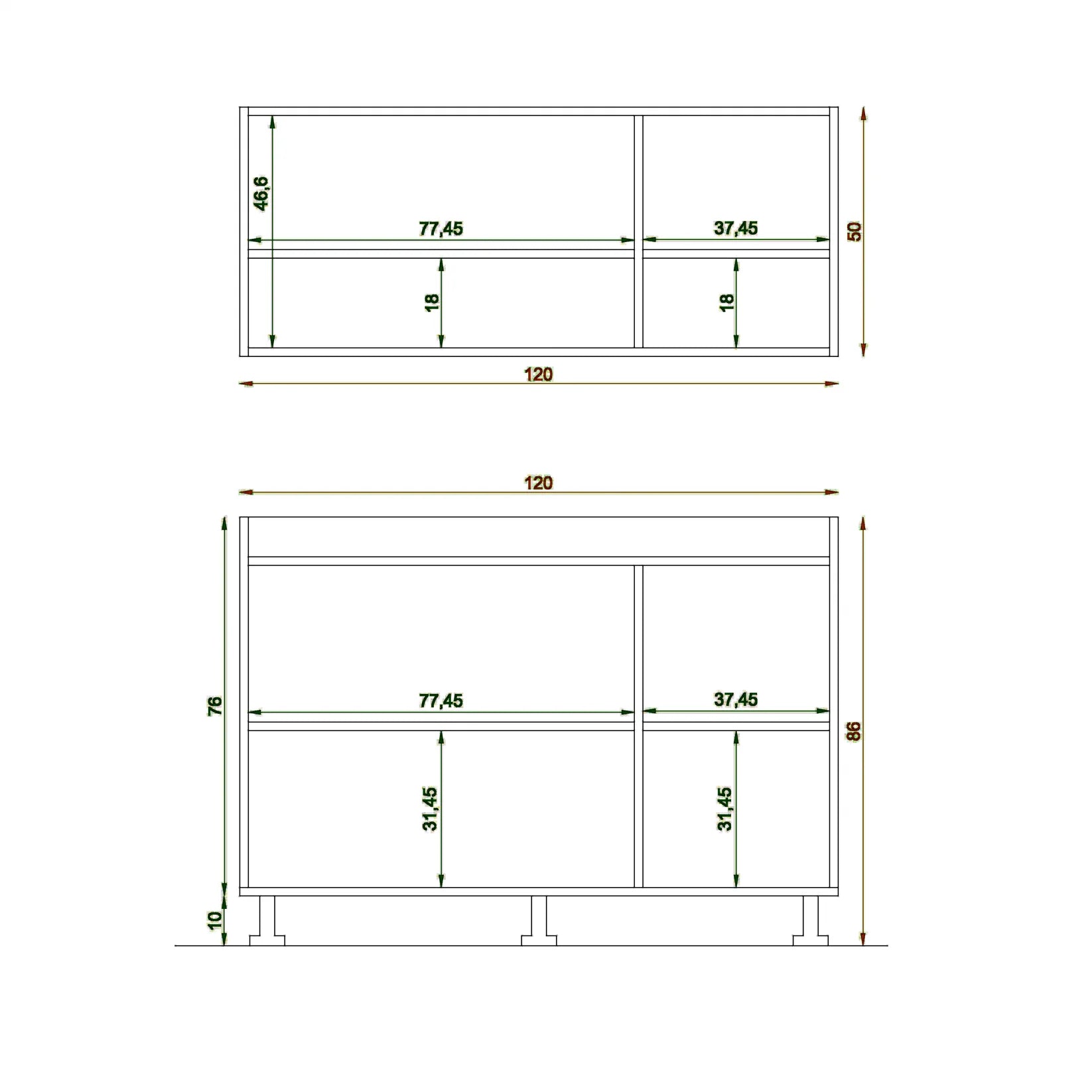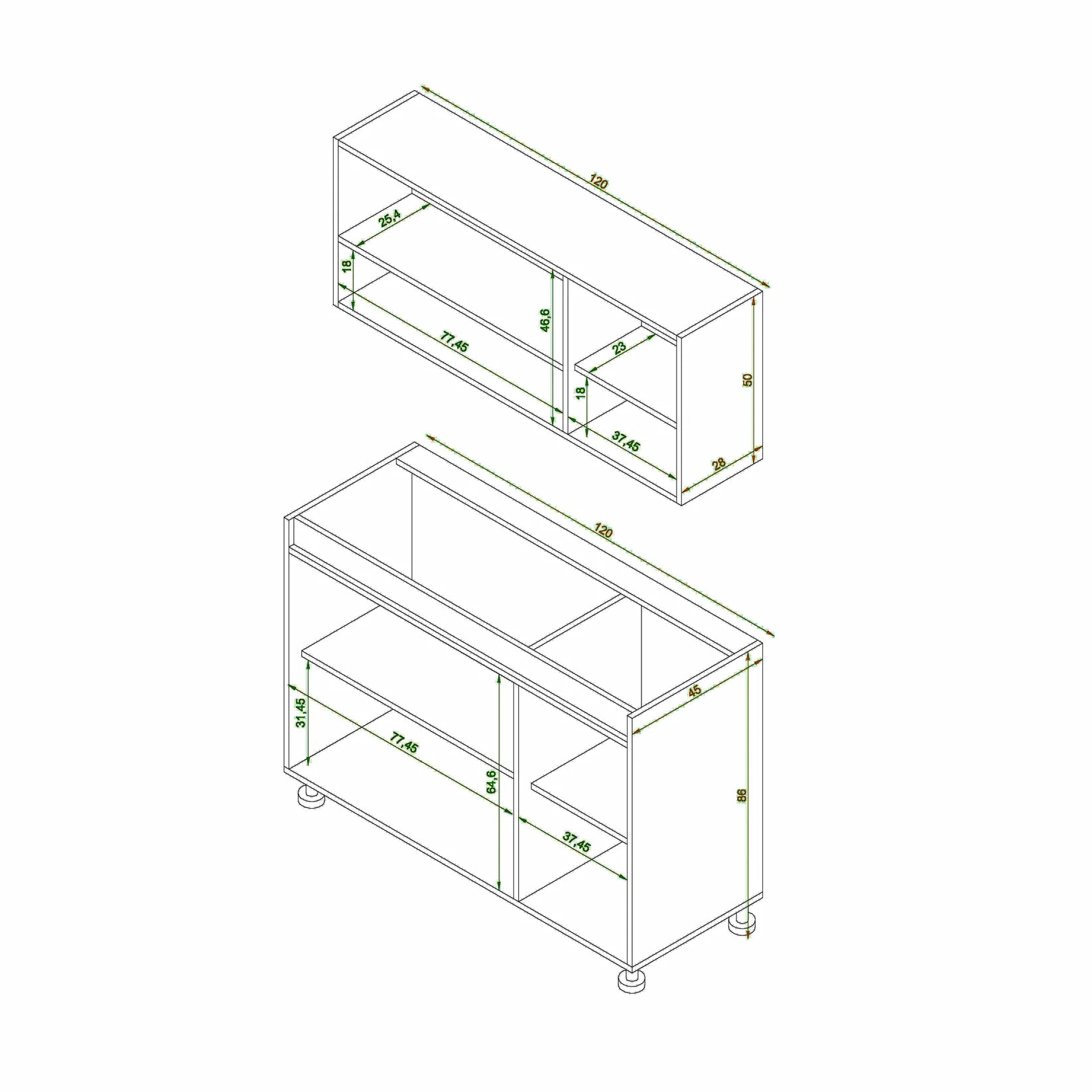 - Lower unit size: W 120cm - D 47cm - H 86cm