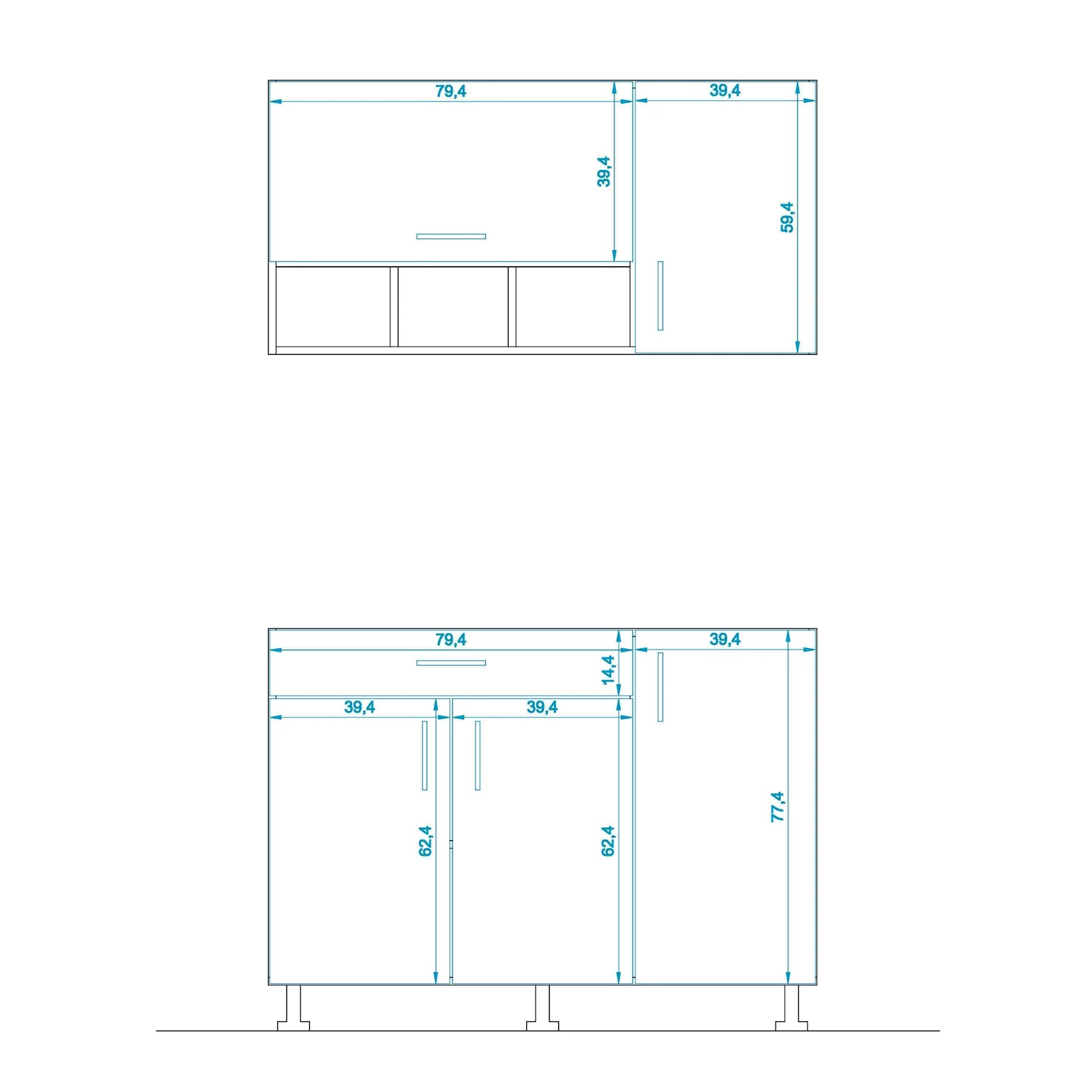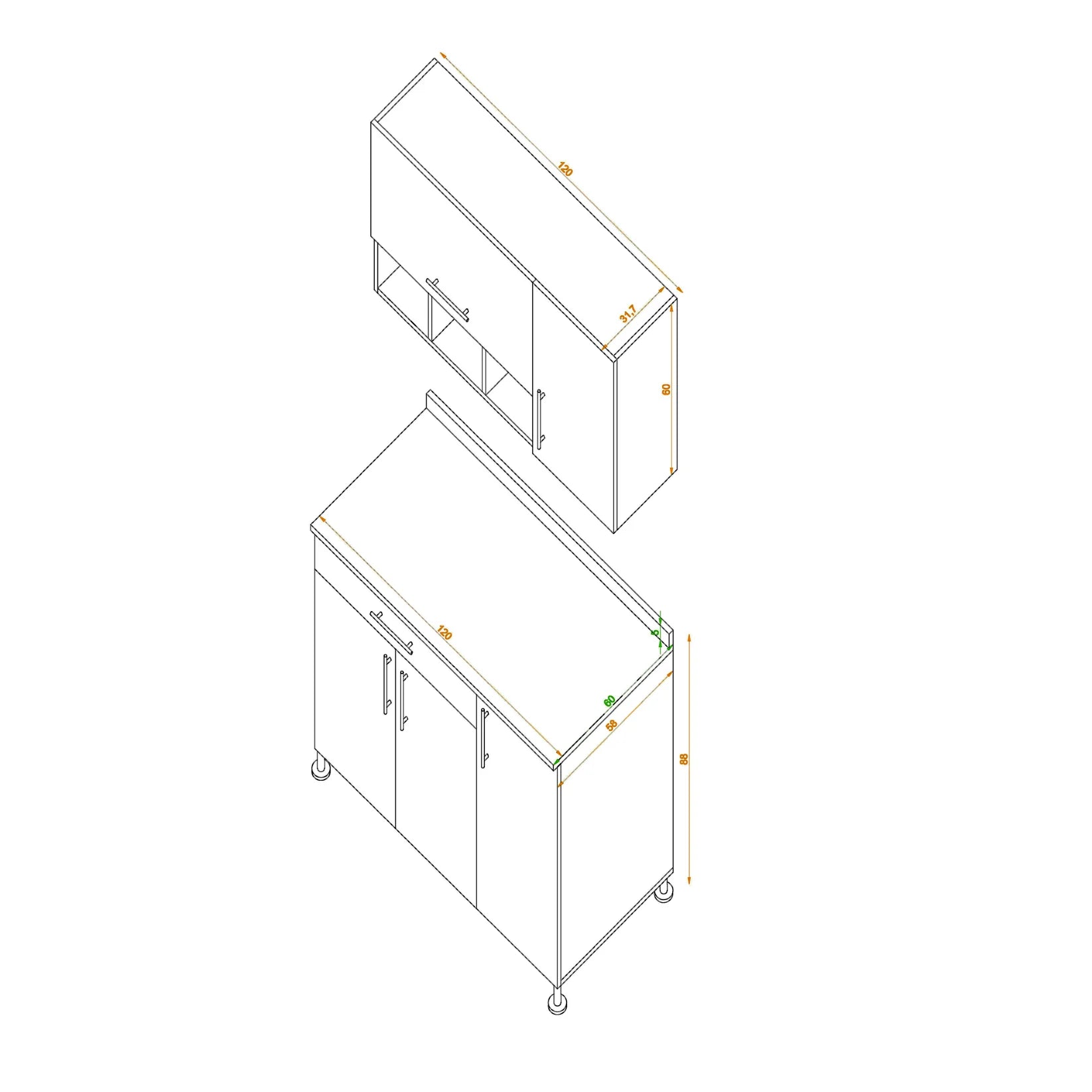 - Lower unit size: W 120cm - D 58cm - H 88cm
