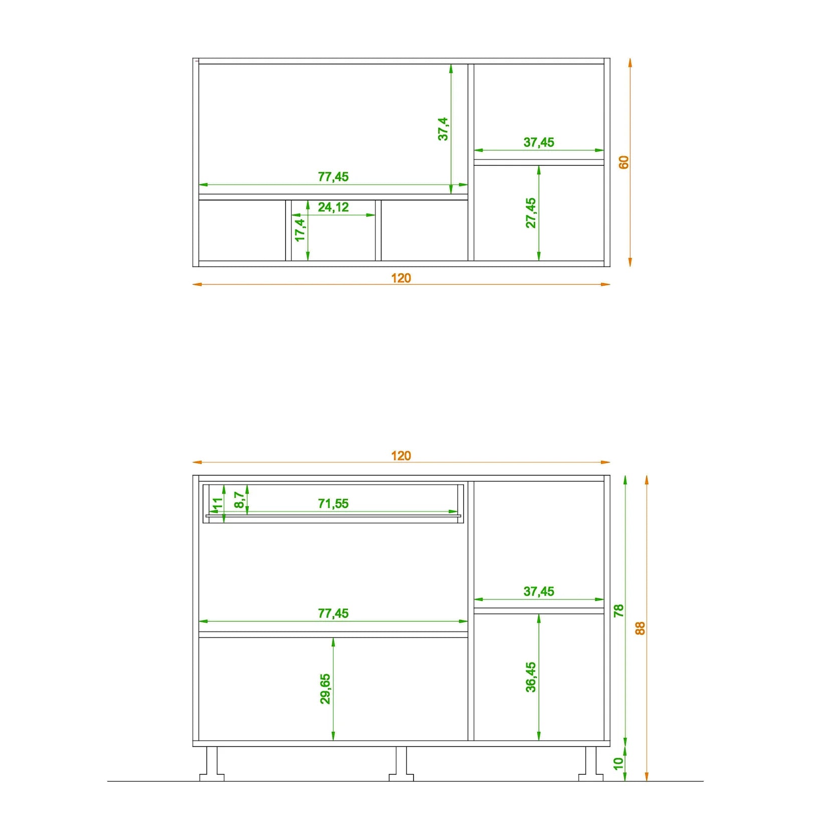 - Upper unit size: W 120 cm - D 32 cm - H 60 cm
