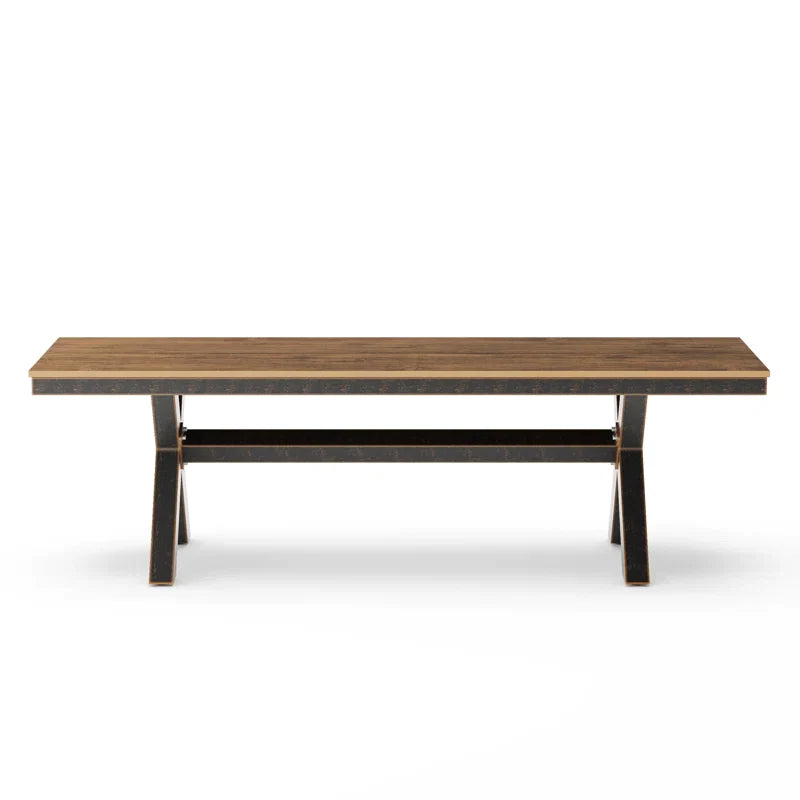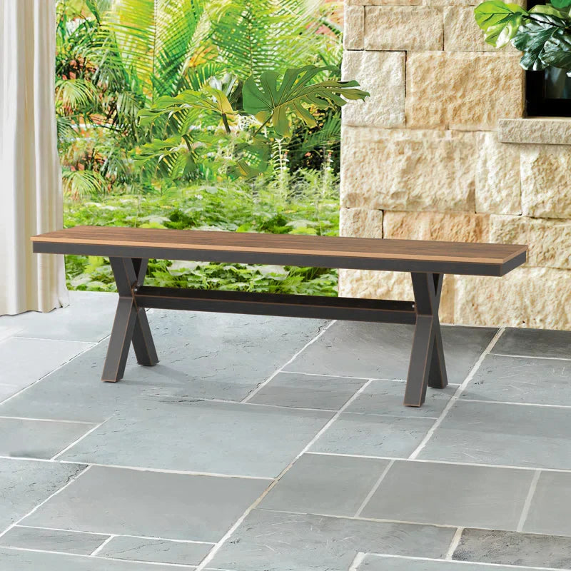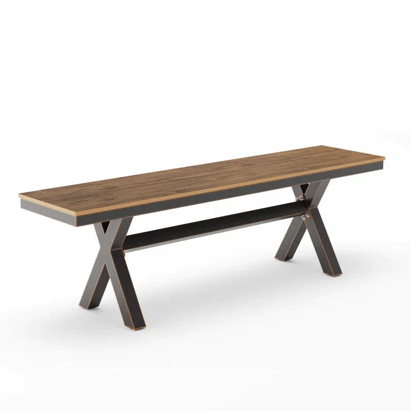 Create a modern and chic outdoor space with the rustic outdoor wooden bench. Crafted from Manufactured wood and a durable powder-coated metal x-cross frame, our picnic bench offers your outdoor space a stylish place to enjoy an afternoon barbeque or a hearty evening meal. The slat-panel bench is 150 Cm in length, big enough to seat three comfortably. This bench is a brilliant choice for your patio, garden, and porch, whether you use it as stand-alone seating or pair it with a coordinating table.