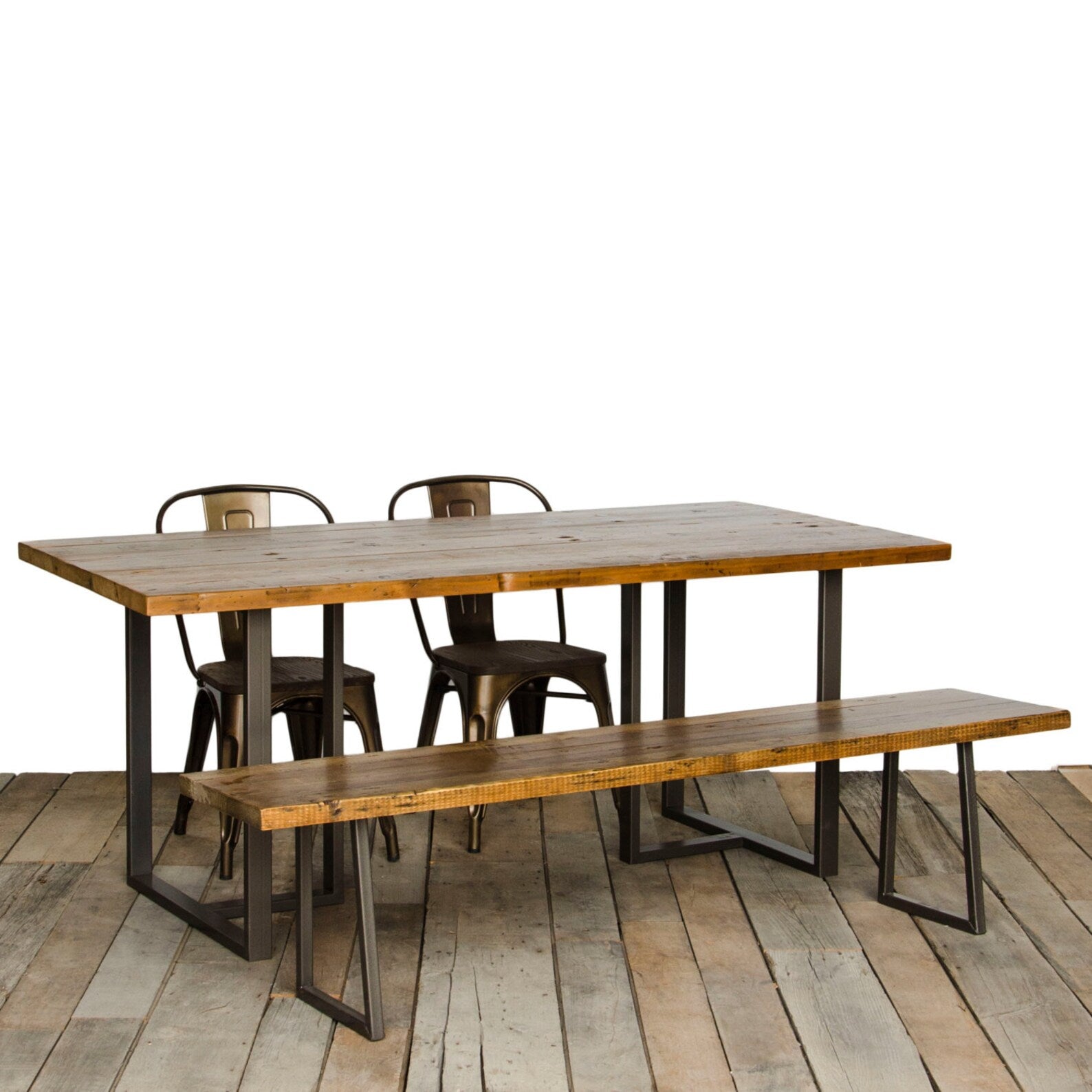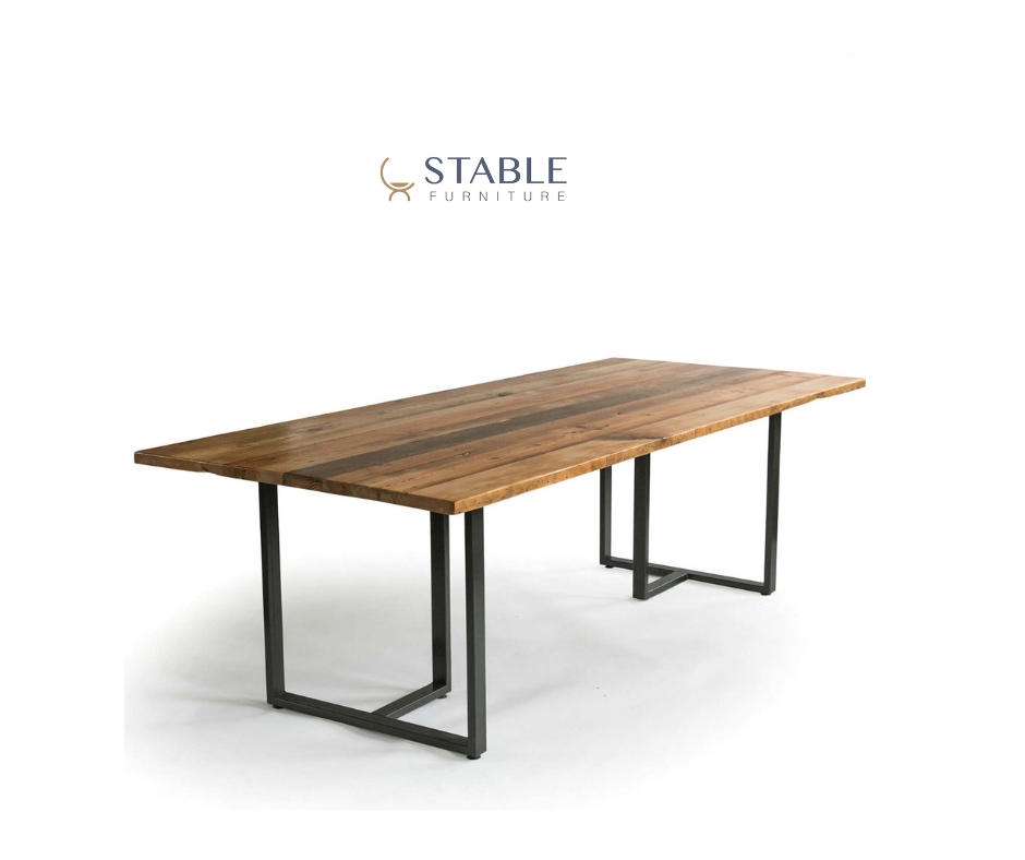 Looking for a custom conference table for your office. Reclaimed wood Dining table with a 1.5" solid wood top and our modern steel table legs. We design and build custom furniture for homes and commercial spaces. Restaurant tables, Custom tables, desks, standing desks, cafe tables, benches, bar stools and more offered in our Stable Furniture shop.
