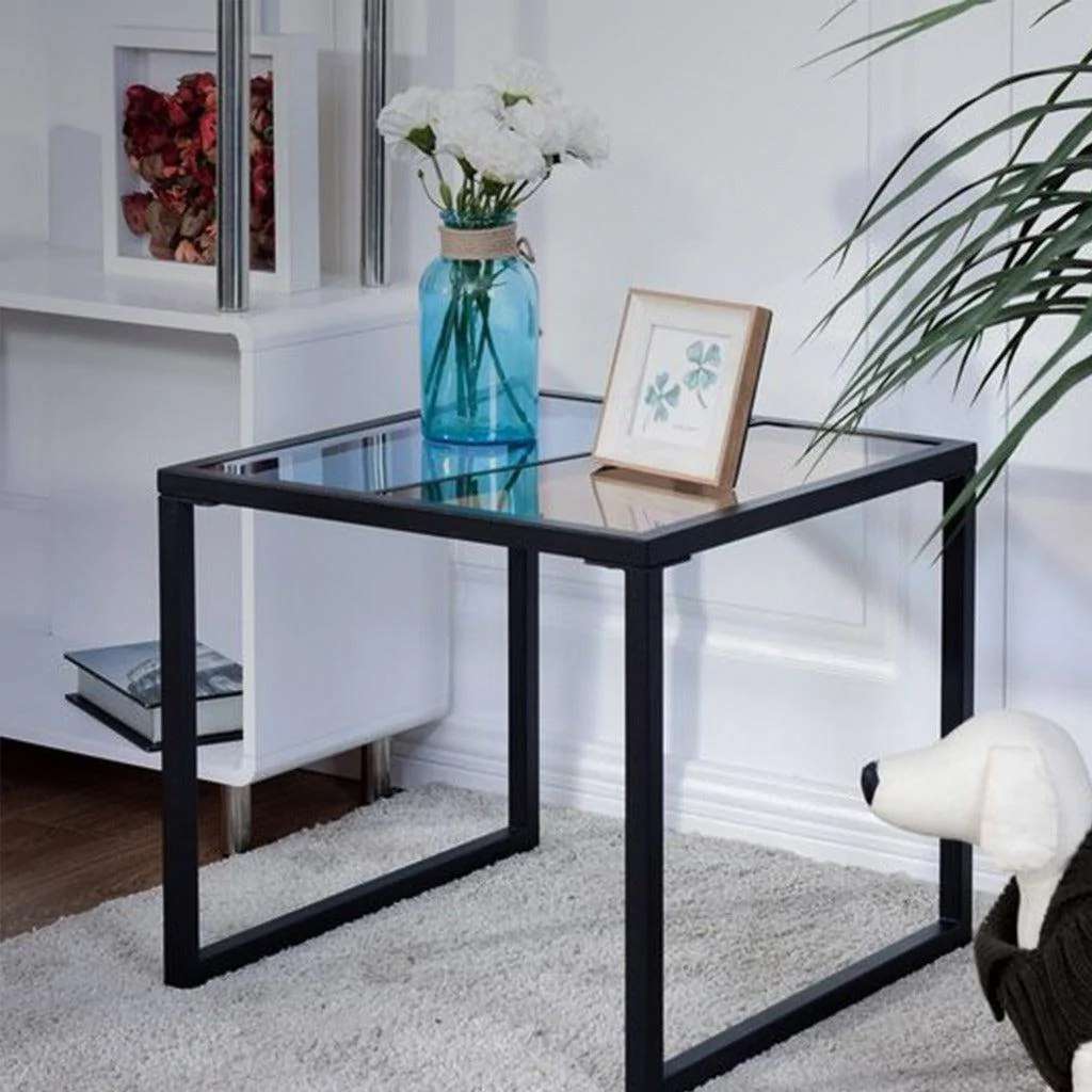This modern table can be used as a side table in the living room or the bedroom, giving a sense of elegance and space as its surface is made of glass and the holders are made of electrostatic painted carbon steel that is resistant to scratches, rust and moisture, which makes it elegant for a long time, and you can choose the color of the holders, whether matte white or black to match your room decor