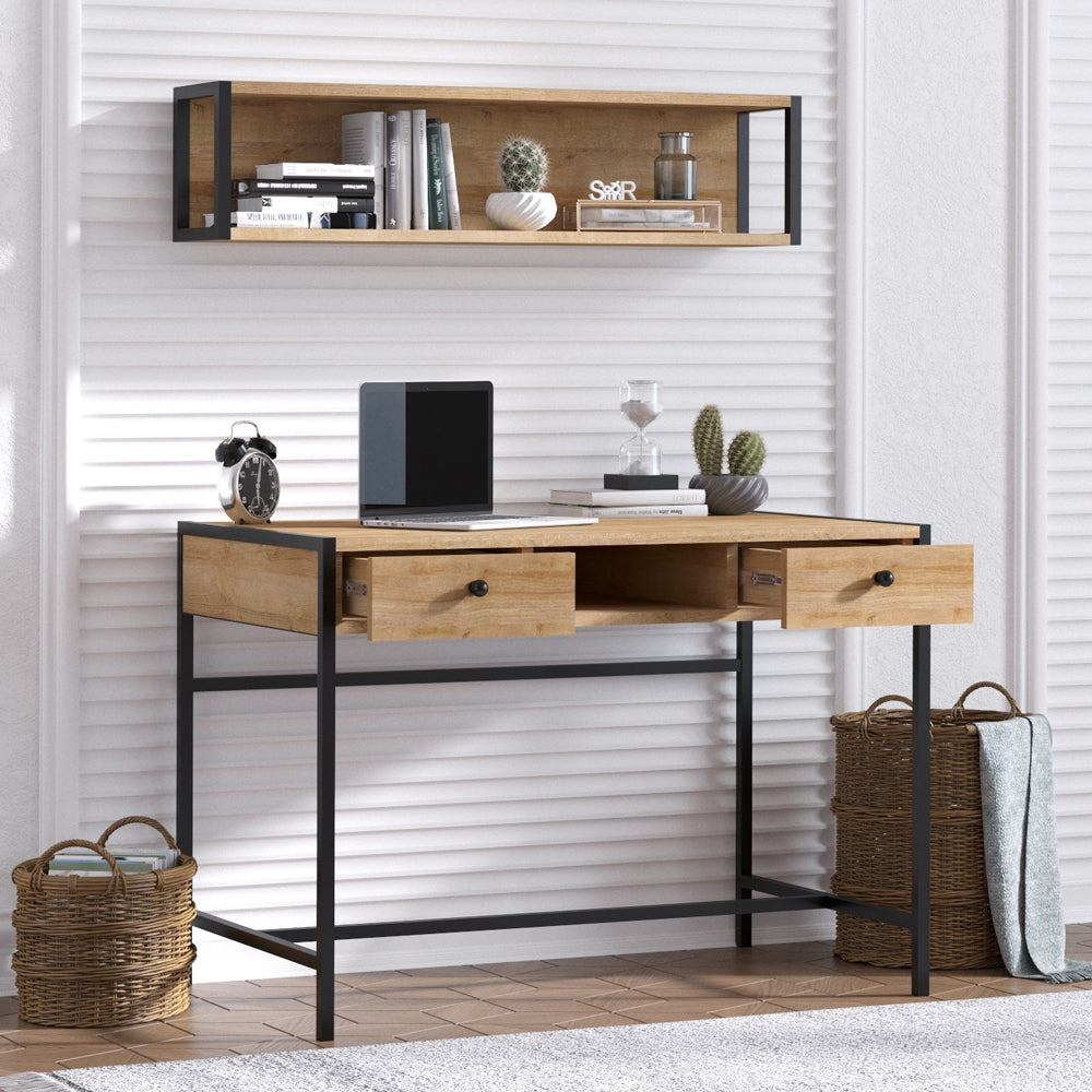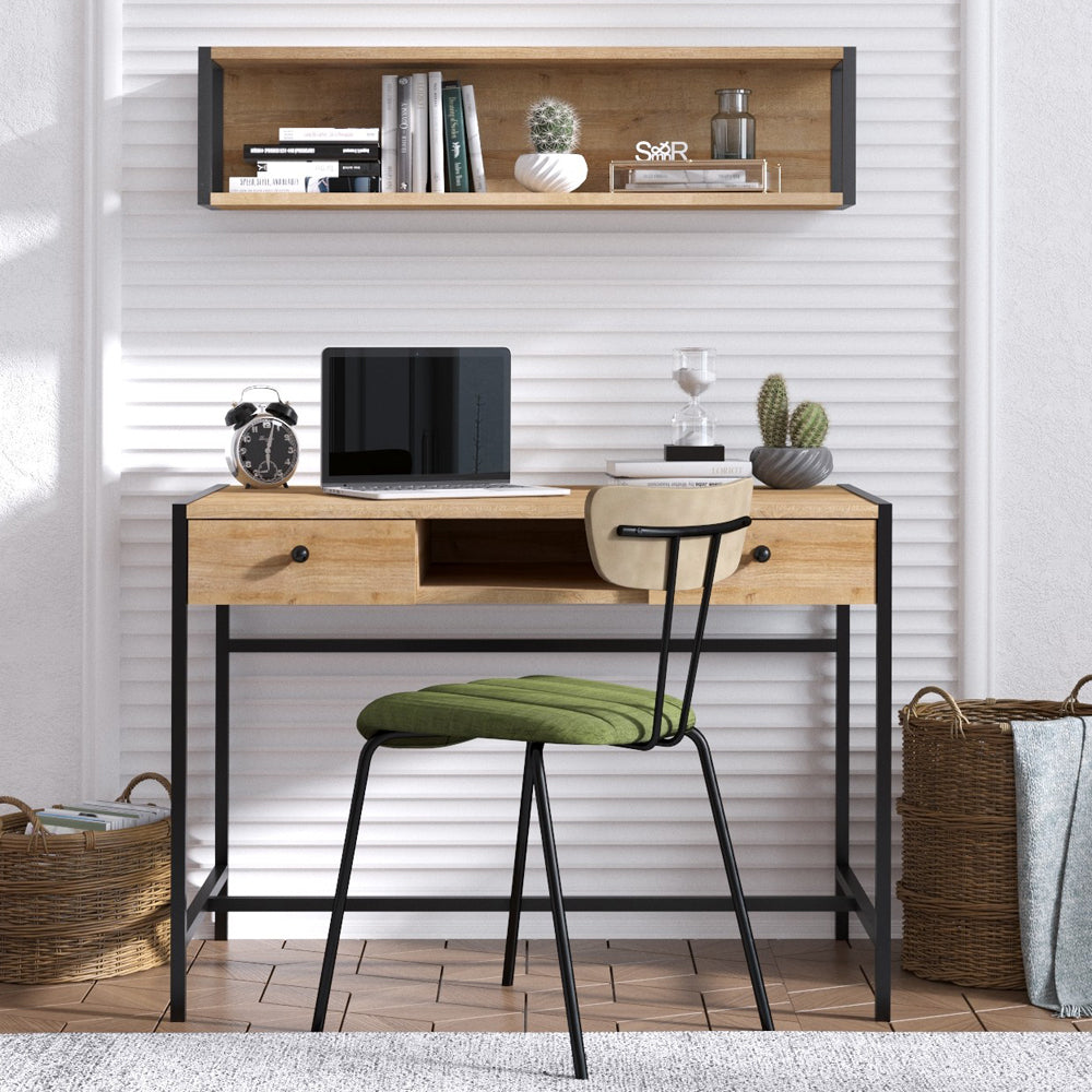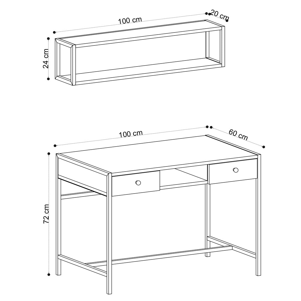 If you would like to make your work at home more pleasant, Gerian is a great choice! The set consists of two products - a hanging cabinet and a desk, which form a harmonious whole. The products are made of a combination of melamine chipboard and metal , which ensures their durability and high resistance. A desk with a minimalist style, equipped with two drawers and a capacious niche, which are located under the top. Thanks to this, you will gain additional space to hide all your treasures from curious household members. The rectangular top will become a convenient base for a laptop and small electronic equipment. The hanging cabinet will accommodate books, impressive decorations and documents that you would like to always have at hand.Gerian will allow you to create a practical office corner fully tailored to your requirements!