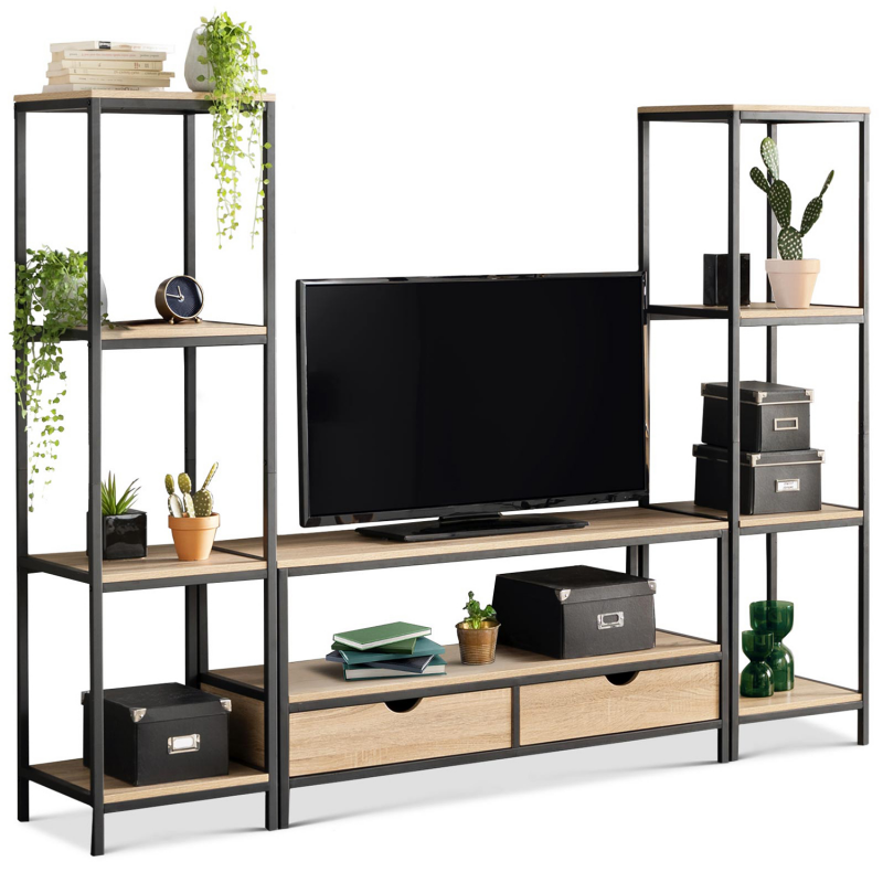 This TV stand will be the best storage solution for your living room. Designed with industrial elegance and rigid metal, this TV stand for TVs up to 60" is suitable for a variety of decoration styles.