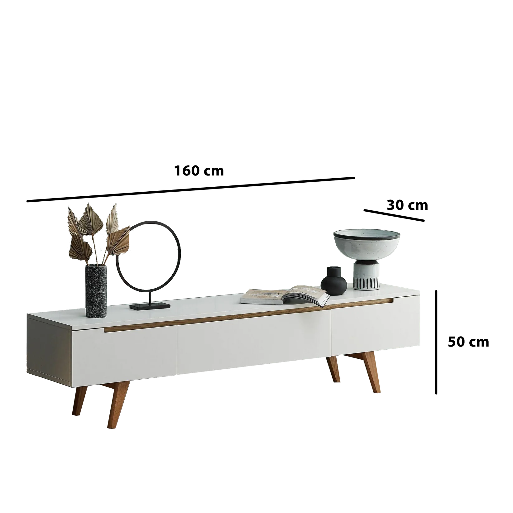 Elevate your TV viewing experience with our sleek and stylish TV table, measuring 160×30 cm. Its modern design and sturdy construction make it the perfect addition to any living room. Say goodbye to clutter and hello to a more organized and aesthetically pleasing space!